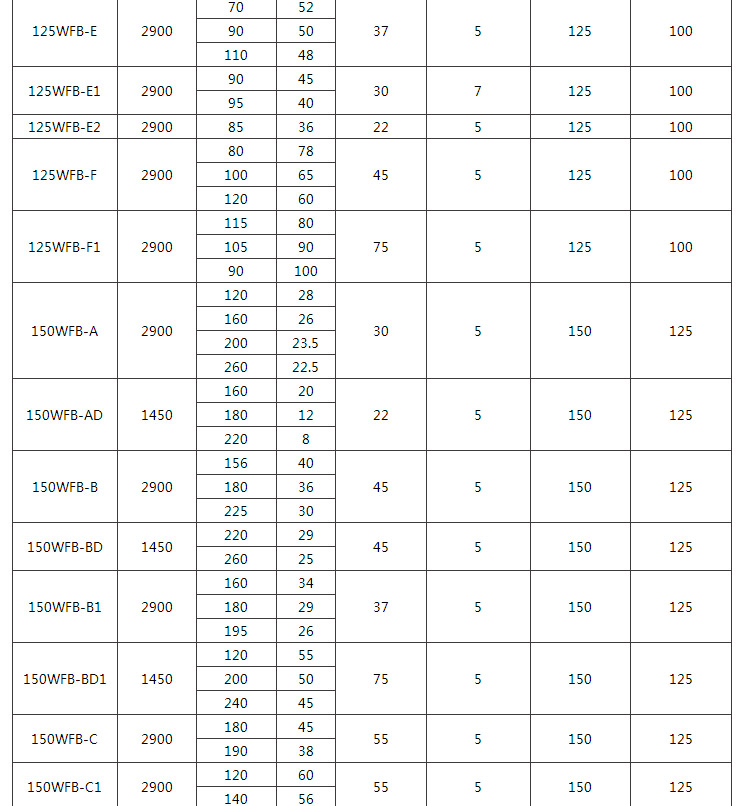 4、假設(shè)水泵的要求是:造型為圓錐型防爆型,其它要求同上,這臺水泵的完整型號為"2.4BXG40WFB-A4-2"。