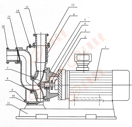 9底蓋板:當(dāng)泵體內(nèi)有沉垢淤積時,可打開底蓋板清除污垢。