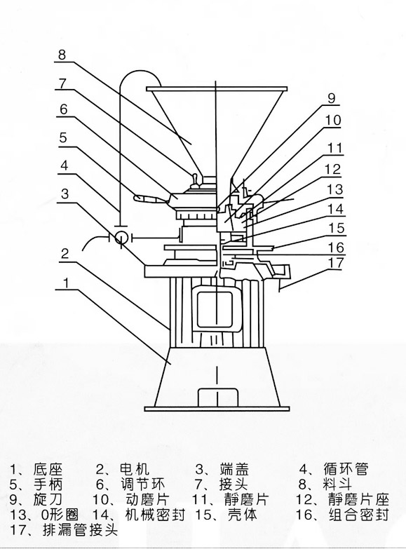 本產(chǎn)品配立式電動機(jī),機(jī)體與電機(jī)連體同軸心結(jié)構(gòu),故又稱連體式膠體磨。