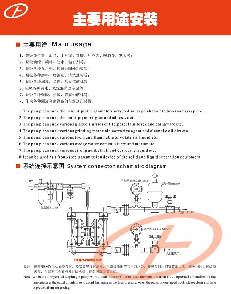 QBY-15型一種采用壓縮空氣為動力源,通過氣閥往復(fù)運動分配空氣,帶動隔膜擠壓輸送介質(zhì)的容積式泵,該泵集雜質(zhì)泵、自吸泵、泥漿泵、屏蔽泵、潛水泵等輸送機械的優(yōu)點。該系列泵具有結(jié)構(gòu)美觀,良好的物理抗性,經(jīng)久耐用等特點,對于各種腐蝕性液體、帶顆粒、高粘度、易揮發(fā)、易燃、易爆、劇毒的液體、陶瓷釉漿、果漿、膠水、油輪倉底油回收、臨時倒罐等液體均能予以抽光吸盡,尤其可以解決葉片式泵的跑、冒、滴、漏及不允許空轉(zhuǎn)等問題,該系列產(chǎn)品可利用普通干凈的工業(yè)氣或儀表氣,具有良好的市場前景。