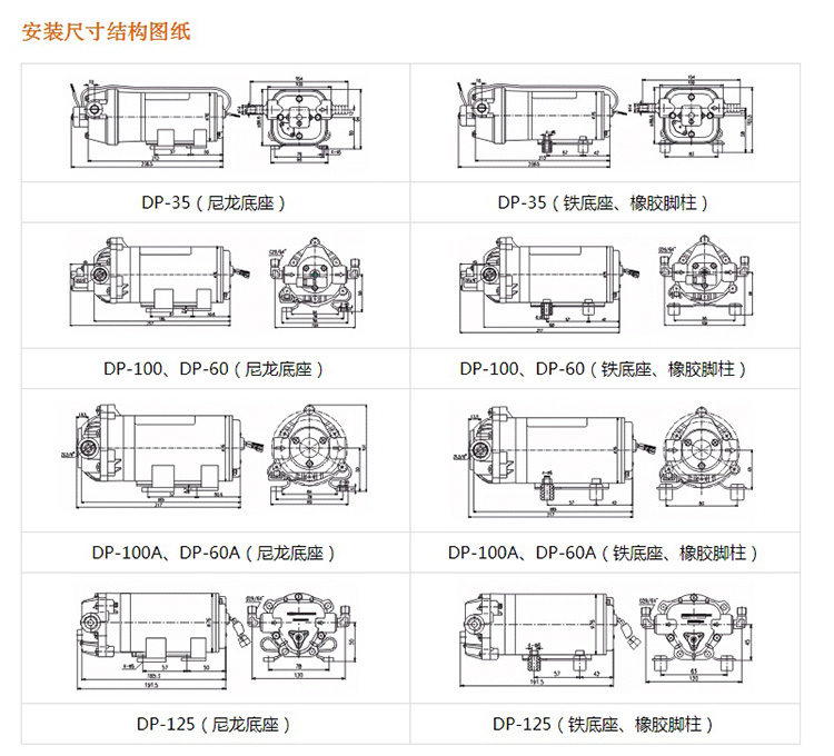 4、DP-60N微型電動隔膜泵“N”代表丁腈耐油膜片。