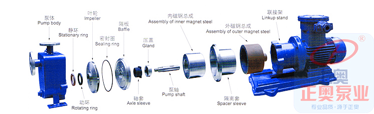 ZCQ系列自吸式磁力泵(以下簡(jiǎn)稱自吸泵)是根據(jù)眾用戶的要求,該泵以靜密封取代動(dòng)密封,使泵的過流部件處于完全密封狀態(tài),解決了其它泵機(jī)械密封無法避免的跑、冒、滴、漏之弊病,泵體及過流部件的材料均采用了耐腐蝕的不銹鋼、鋼玉陶瓷、四氟石器等材料制造,即有CQ型磁力驅(qū)動(dòng)泵的功能,又集自吸于一身,不需底閥和引灌水、自吸高度4米。