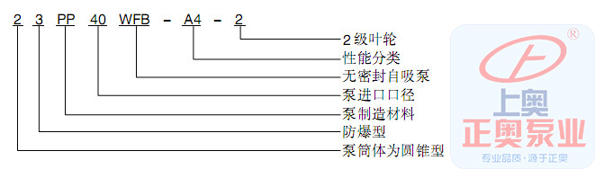 4、假設(shè)水泵的要求是:造型為圓錐型防爆型,其它要求同上,這臺水泵的完整型號為"2.4BXG40WFB-A4-2"。