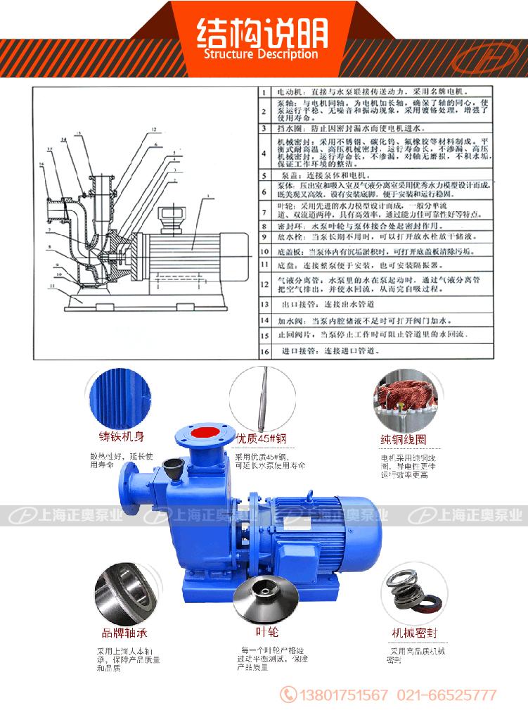 6、結(jié)構(gòu)獨特、自吸性能好,工作前只需保證泵體內(nèi)儲有定量引液即可。