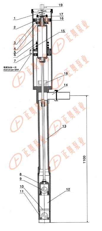 氣動漿料泵產(chǎn)品采用氣壓差的作用,使活塞上下運(yùn)行,帶動導(dǎo)料活塞開閉,起到提料的作用。 具體裝置如圖(一)所示: 1、缸體 2、進(jìn)氣閥 3、彈簧 4、彈簧 5、活塞 6、排氣管 7、換氣管 8、密封底座 9、密封上蓋 10、漿料缸體 11、進(jìn)料口 12、漿料活塞 13、進(jìn)料鋼球 14、鋼球 15、連桿 16、漿料管 17、出料口 18、加油閥 19、放氣閥