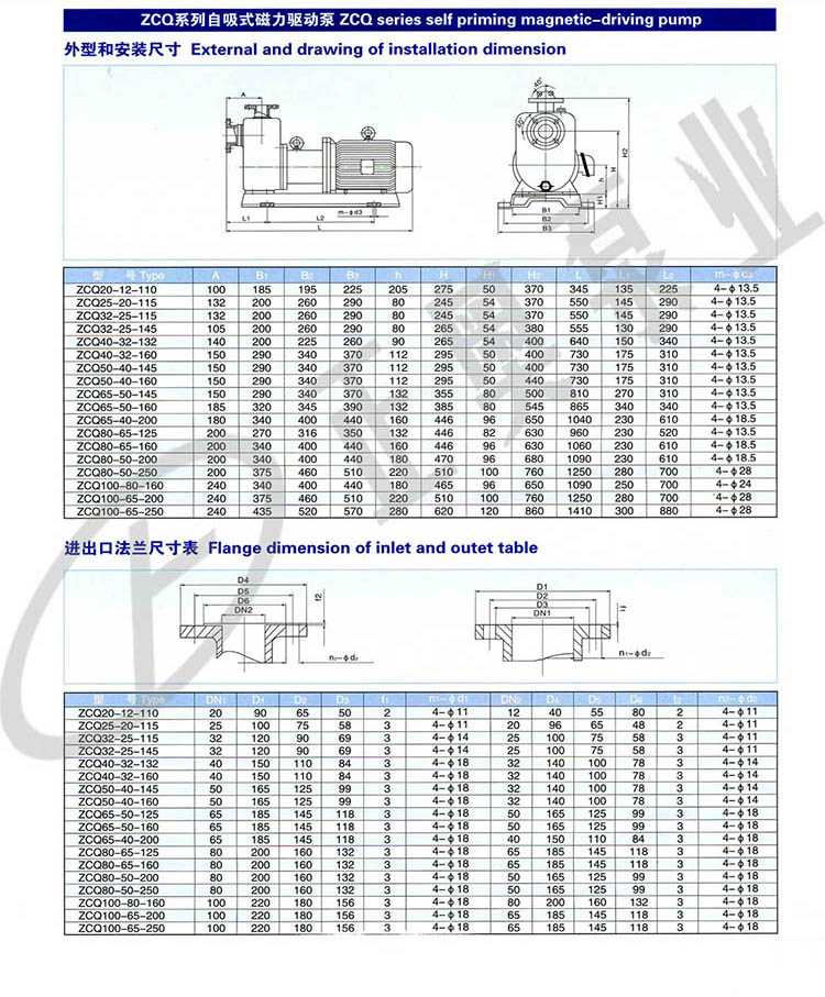ZCQ型自吸式磁力泵性能參數(shù)表