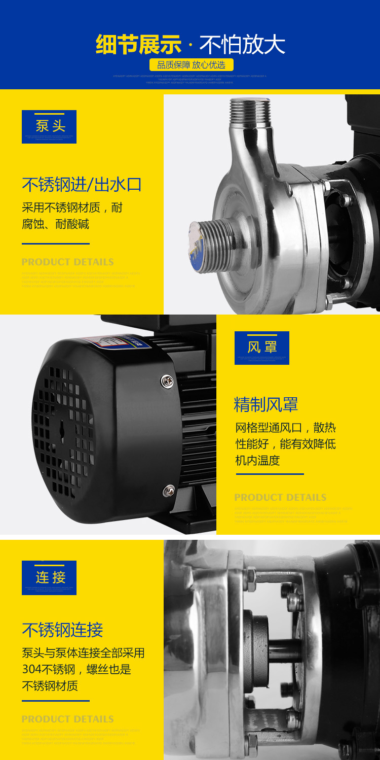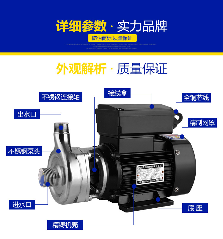 不銹鋼離心式耐腐蝕微型電泵可輸送溫度不高于103℃,含有細(xì)小軟顆;蚶w維質(zhì),帶腐蝕性或有衛(wèi)生要求的液體,廣泛適用于食品、飲料、醫(yī)藥、污水處理、化工、電鍍、漂染、精細(xì)化工等行業(yè)使用。