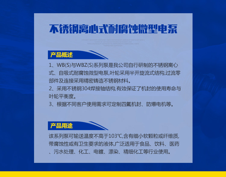 - 下一個(gè)產(chǎn)品: WBZ不銹鋼自吸式耐腐蝕離心泵