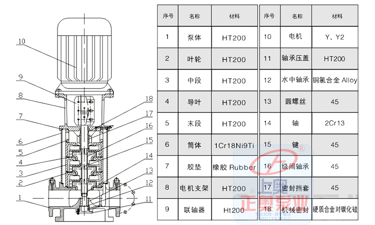 3、該不銹鋼多級(jí)泵的過流部分采用不銹鋼板沖壓焊接而成,使得泵可適用于輕度腐蝕性介質(zhì)。