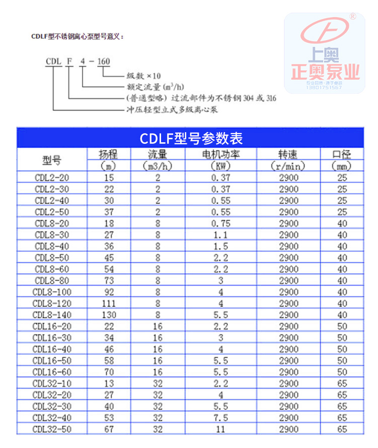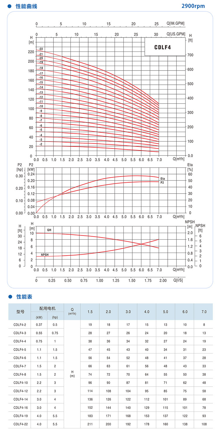 CDLF-4不銹鋼立式多級(jí)泵性能參數(shù)選型: